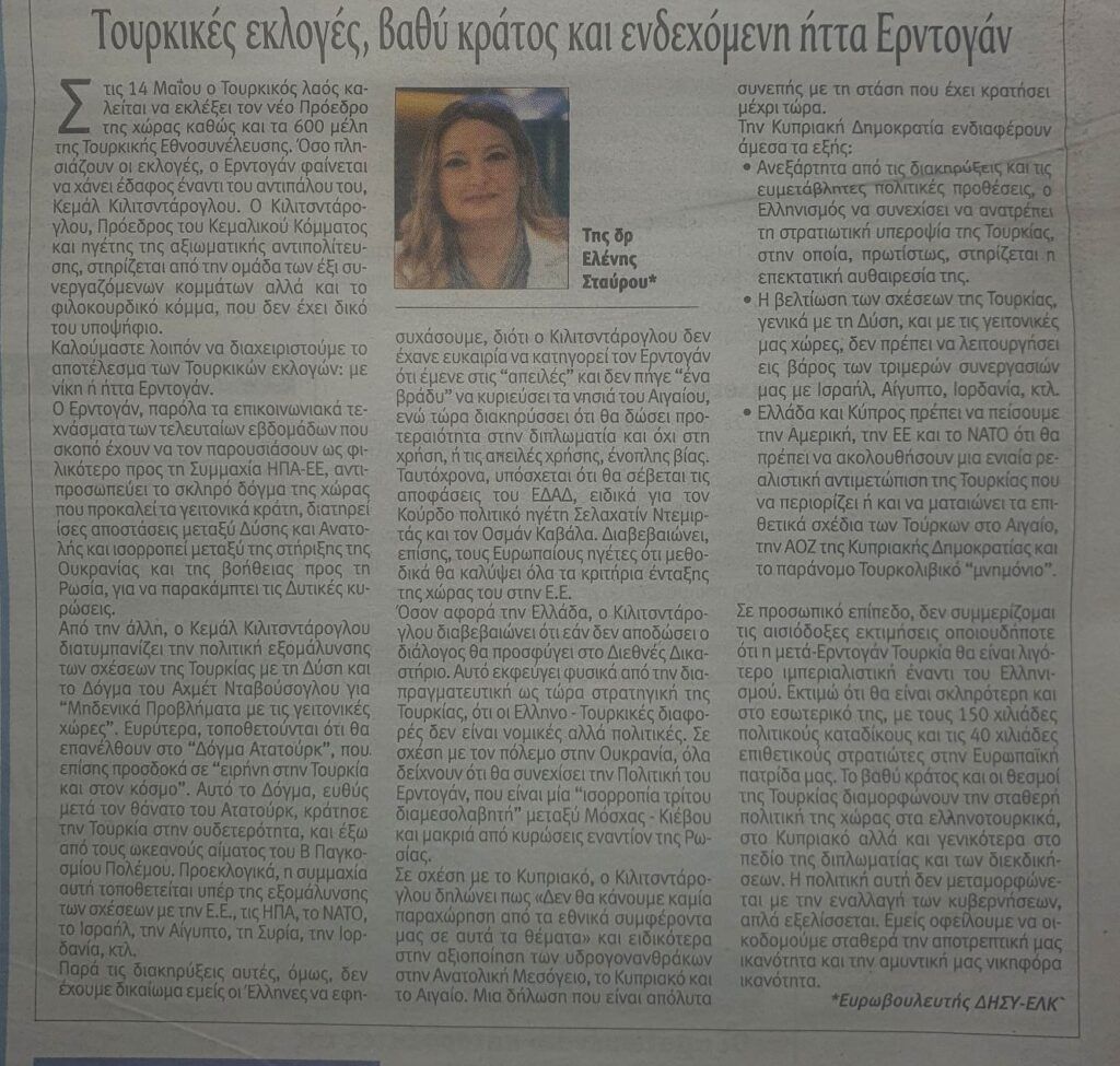 ΣΕ ΠΡΟΣΩΠΙΚΟ ΕΠΙΠΕΔΟ, δεν συμμερίζομαι τις αισιόδοξες εκτιμήσεις οποιουδήποτε ότι η μετά-Ερντογάν Τουρκία θα είναι λιγότερο ιμπεριαλιστική έναντι του Ελληνισμού. Εκτιμώ ότι θα είναι σκληρότερη και στο εσωτερικό της, με τους 150 χιλιάδες πολιτικούς καταδίκους και τις 40 χιλιάδες επιθετικούς στρατιώτες στην ευρωπαϊκή πατρίδα μας. Το βαθύ κράτος και οι θεσμοί της Τουρκίας διαμορφώνουν την πολιτική της χώρας στα ελληνοτουρκικά, στο Κυπριακό αλλά και γενικότερα στο πεδίο της διπλωματίας και των διεκδικήσεων. Η πολιτική αυτή δεν μεταμορφώνεται με την εναλλαγή των κυβερνήσεων, απλά εξελίσσεται. Εμείς τι κάνουμε προ αυτών των επερχόμενων;